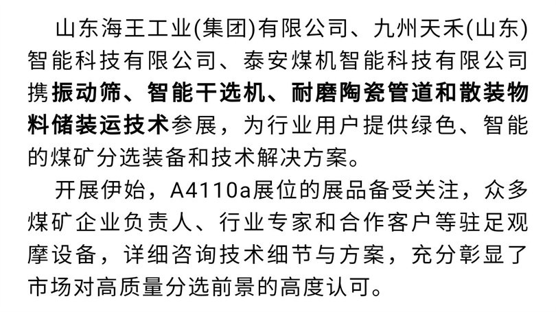 第二十一届中国国际煤炭采矿展隆重召开,海王工业集团携旗下子公司共探绿色分选新路径